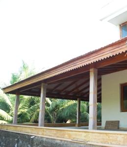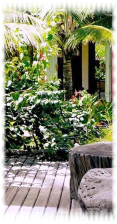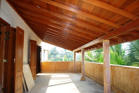 This veranda looks over the garden and 300 swaying coconut palms. It runs along the entire front and side of the villa and is connected to the kitchen via a back walkway and corridor.